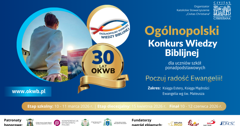 15 kwietnia w całej Polsce odbył się etap diecezjalny 30. Ogólnopolskiego Konkursu Wiedzy Biblijnej. To jubileuszowa edycja wydarzenia, w którym – jak co roku – wzięli udział uczniowie ze wszystkich diecezji.