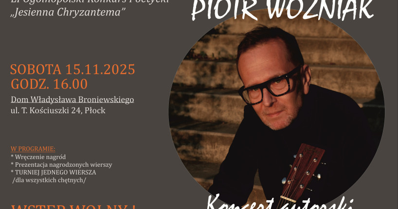 Katolickie Stowarzyszenie "Civitas Christiana" Oddział w Płocku serdecznie zaprasza na uroczysty finał 51. edycji Ogólnopolskiego Konkursu Poetyckiego "Jesienna Chryzantema".