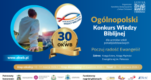 2 lutego zakończyliśmy rejestrację szkół ponadpodstawowych do trzydziestej, jubileuszowej edycji OKWB. Liczba zgłoszonych jednostek świadczy o tym, iż pomimo zmniejszenia ilości lekcji religii, młodzi ludzie noszą w sobie pragnienie pogłębienia biblijnej …