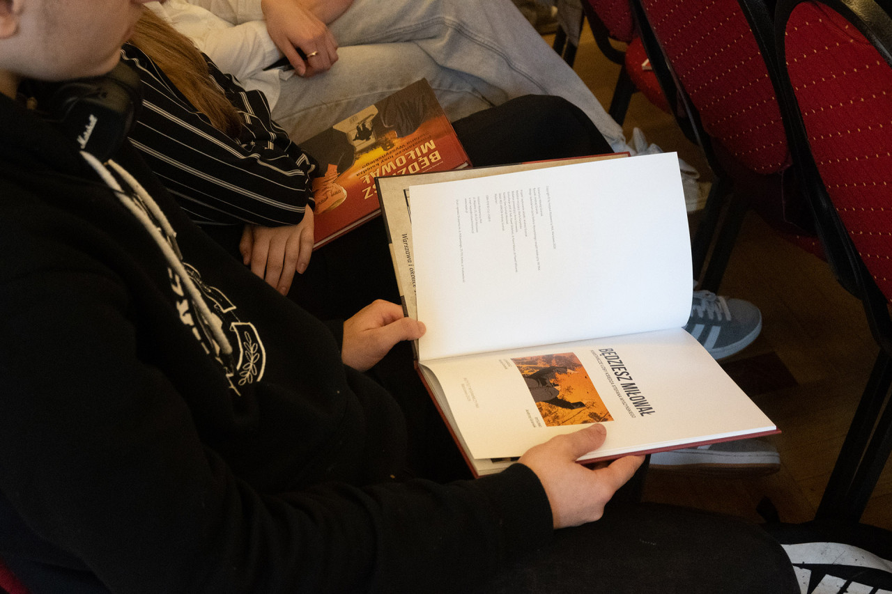 Prelegenci zwrócili uwagę na formy przekazywania wiedzy historycznej. Punktem odniesienia była prezentacja komiksu „Będziesz miłował”, który – jako medium wizualne – ma docierać do szerszego i młodszego grona odbiorców – o czym opowiedziała Marta Karpińska. Redaktor inicjująca powstanie tego wydawnictwa podzieliła się historią pomysłu oraz dbałości o detale w treści oraz ilustracjach komiksu.