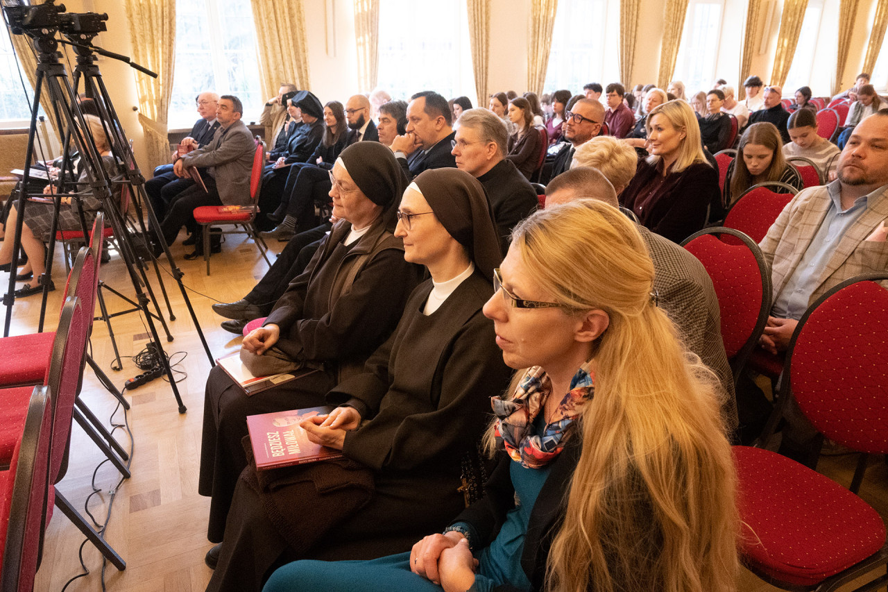 Prof. Paweł Skibiński przypomniał kontekst historyczny oraz znaczenie postaci ks. Stefana Wyszyńskiego dla Kościoła i Polski. Podkreślił, że jego doświadczenia z okresu wojny i powstania miały istotny wpływ na jego późniejszą posługę oraz nauczanie.