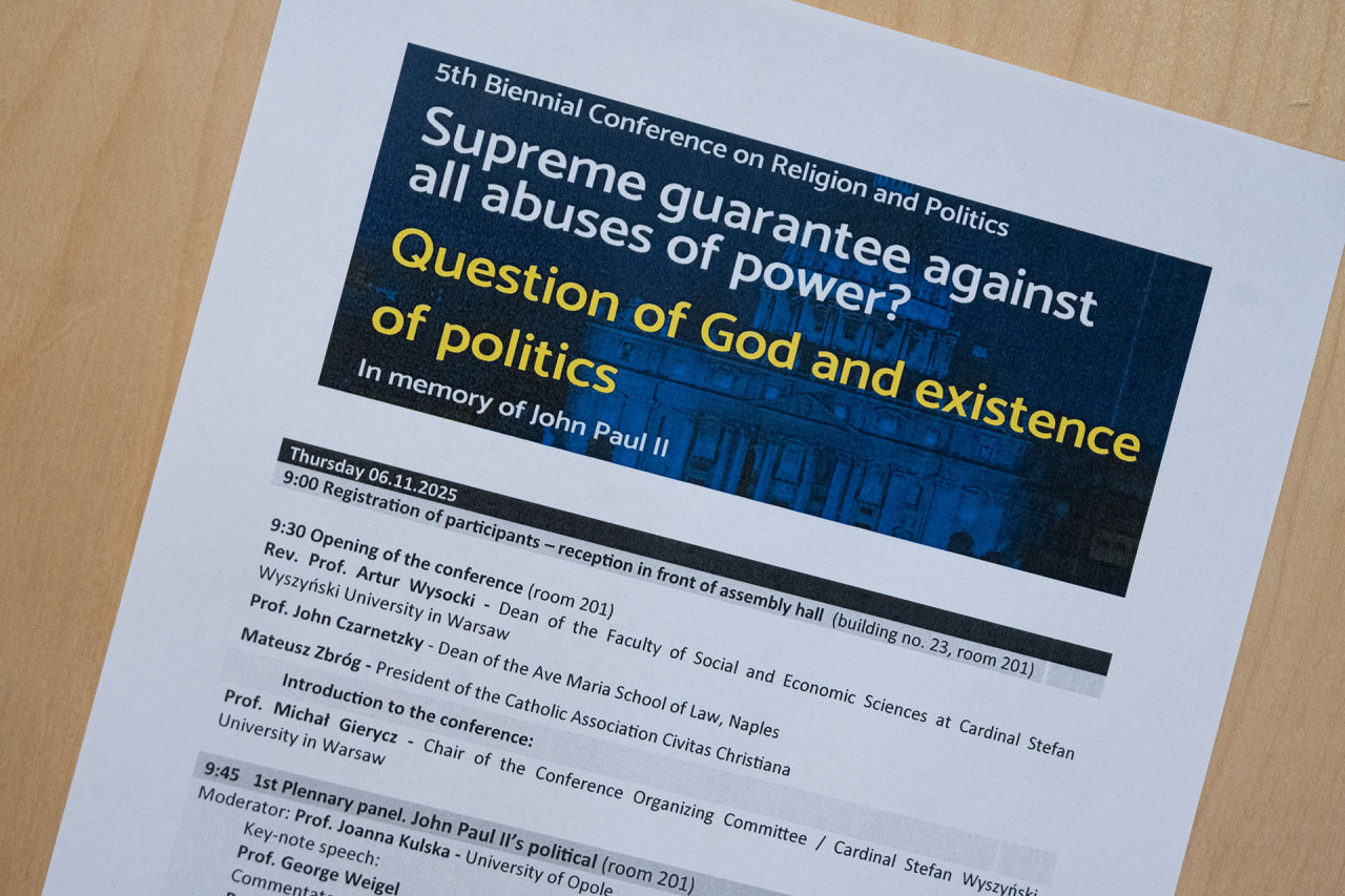 Wczoraj na Uniwersytecie Kardynała Stefana Wyszyńskiego w Warszawie odbyły się dwa ważne wydarzenia: rozpoczęła się dwudniowa międzynarodowa konferencja naukowa pt. „Supreme guarantee against all abuses of power? Question of God and existence of politics. In memory of John Paul II” („Najwyższy Gwarant przeciwko wszystkim nadużyciom władzy? Pytanie o Boga a istnienie polityki. Pamięci Jana Pawła II”) oraz ogólnopolskie sympozjum naukowe zatytułowane „Kościół i świat w dobie przemian. Prymasa Wyszyńskiego sposób na kryzys”.