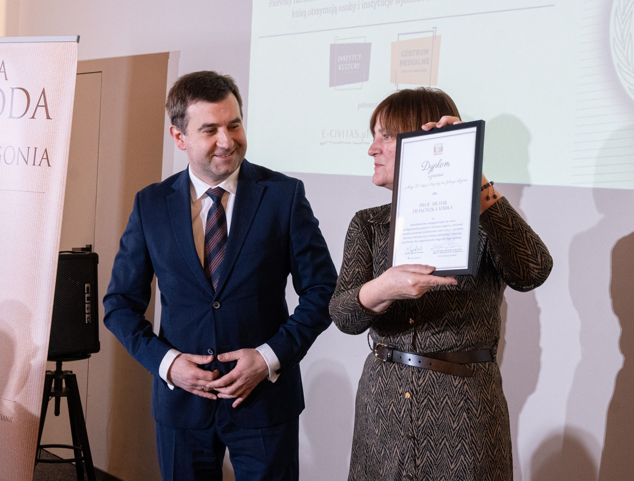 Jako pierwsza wyróżnienie odebrała prof. Anna Pobóg-Lenartowicz - „za mistrzowskie łączenie najwyższego poziomu badań i pracy naukowej z etosem służby, głębokim zakorzenieniem w tradycji regionu oraz wyjątkową umiejętnością opowiadania historii, które umacniają wspólnotę”. To uzasadnienie w laudacji rozwinął dr hab. Marek Białokur, historyk z Uniwersytetu Opolskiego.