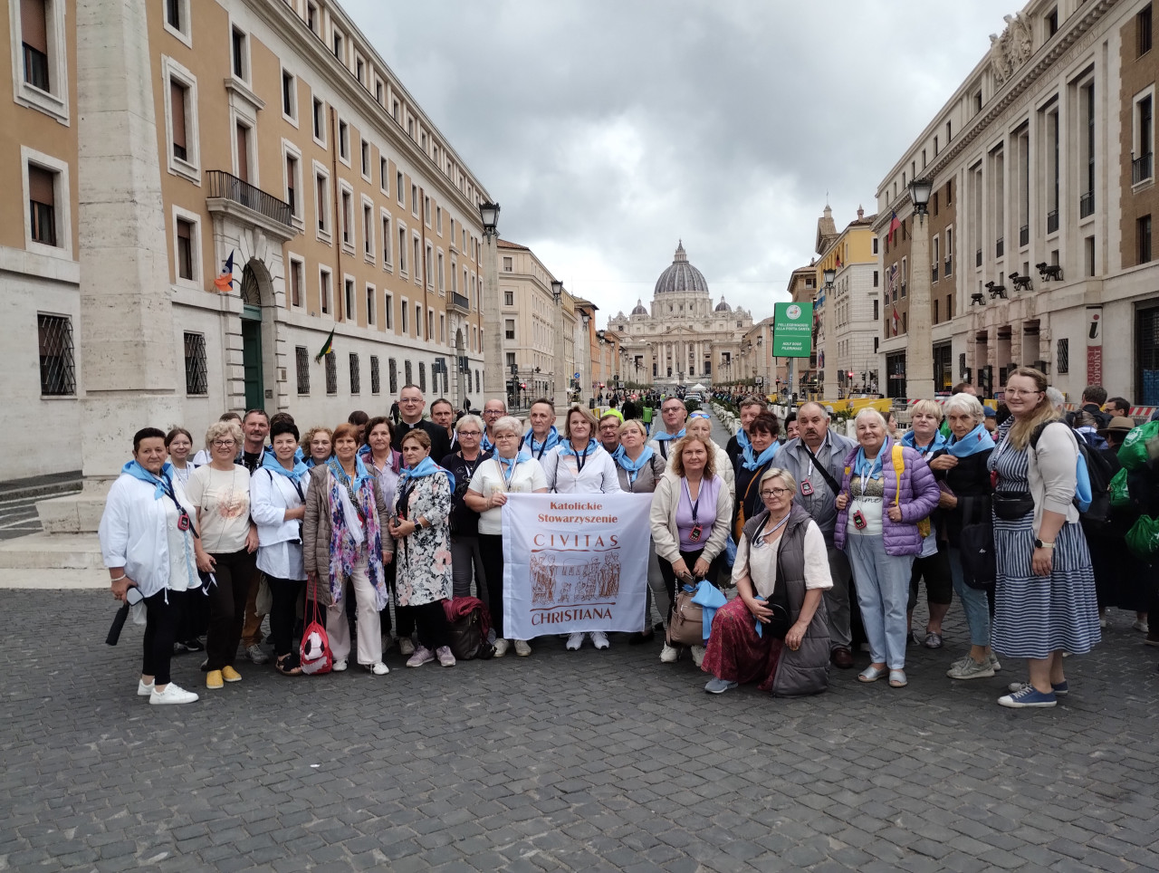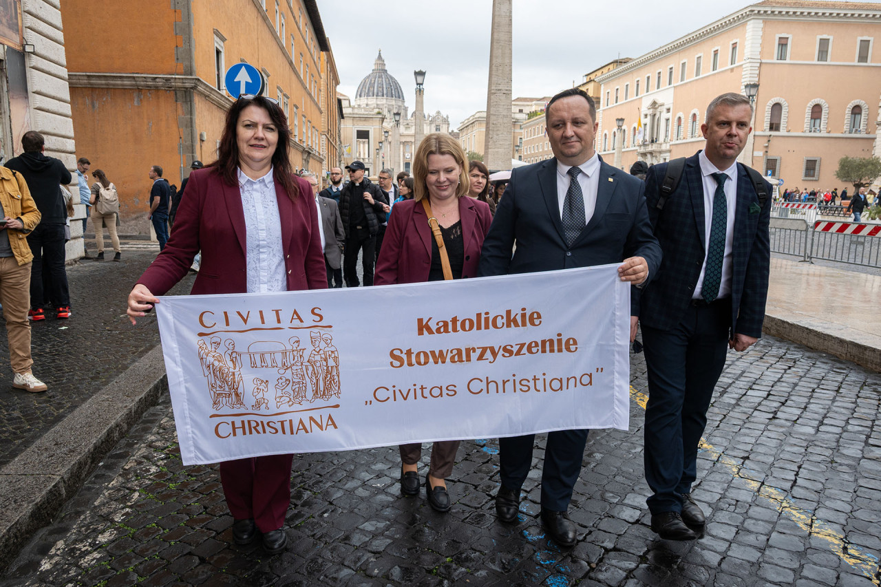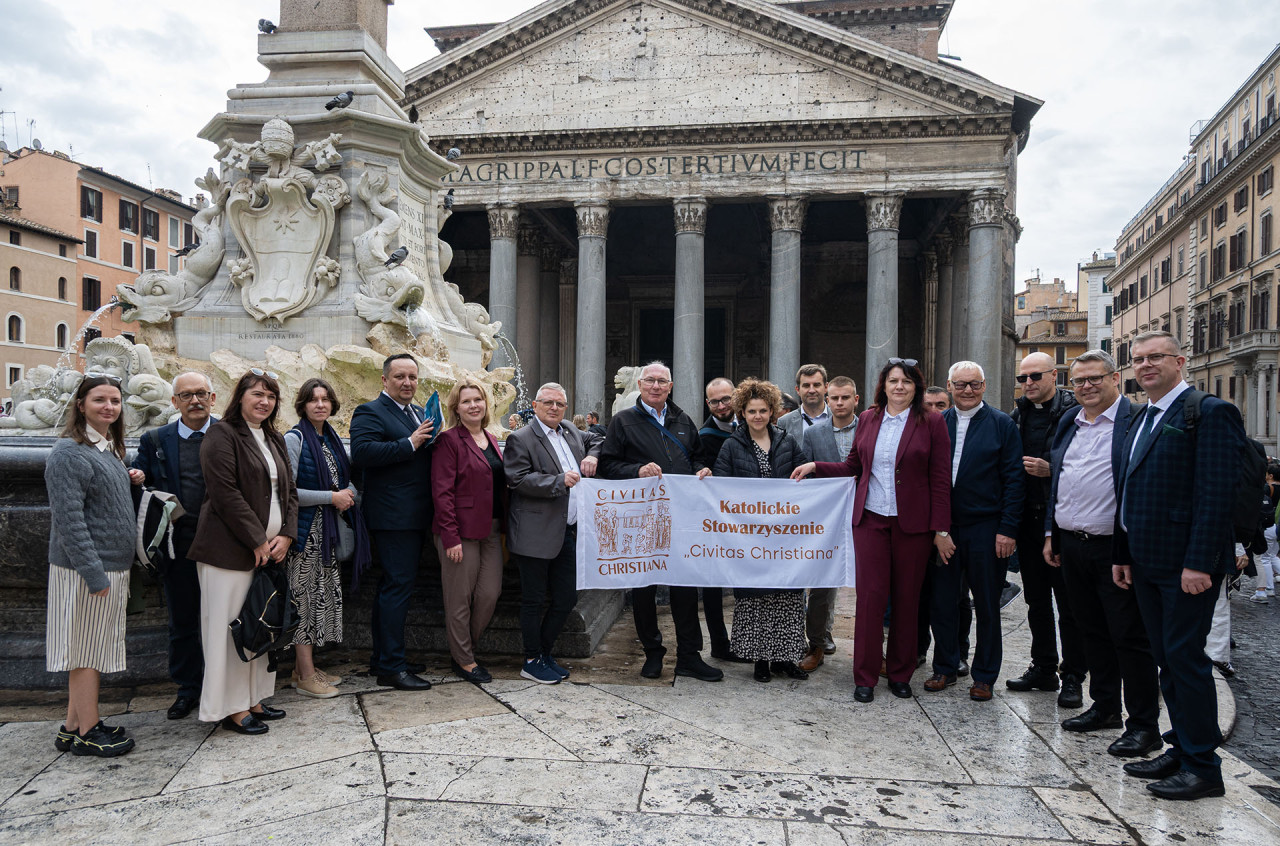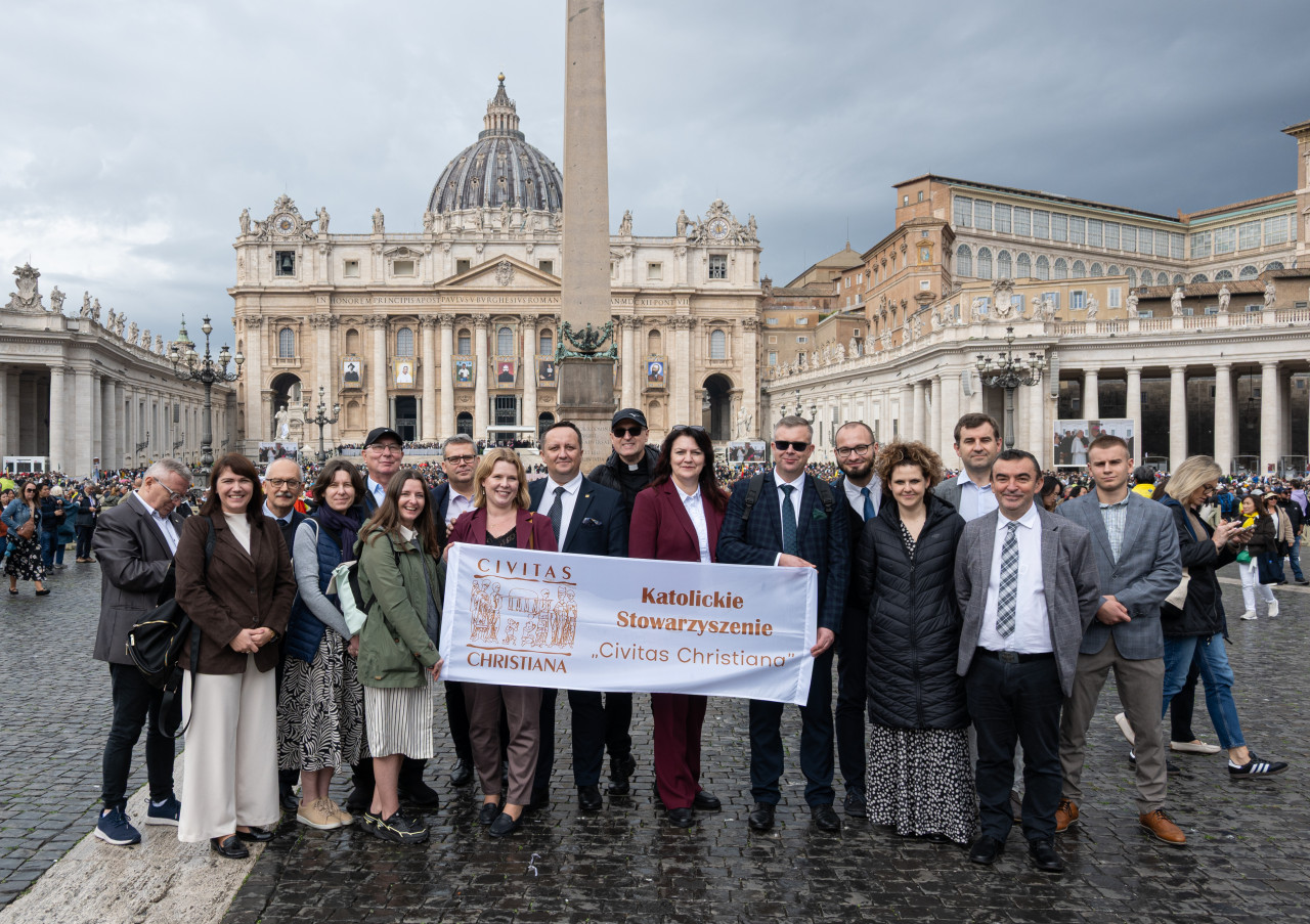 Pielgrzymka Stowarzyszenia, do udziału w której zaprosiliśmy też naszych sympatyków i osoby współpracujące, stanowiła jeden z najważniejszych elementów roku formacyjnego w „Civitas Christiana” przeżywanego pod hasłem: „Z bł. Stefanem kard. Wyszyńskim w nowy czas”. 2025 rok to dla naszego środowiska czas inauguracji wielkiej modlitwy o rychłą kanonizację Prymasa Tysiąclecia. Jesteśmy Bogu i Matce Najświętszej wdzięczni, że tę prośbę mogliśmy zanosić także w Rzymie – w sercu Kościoła.