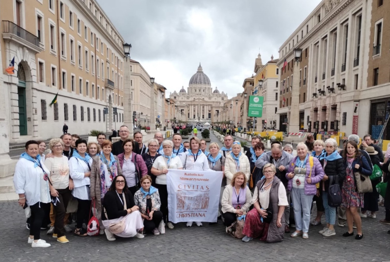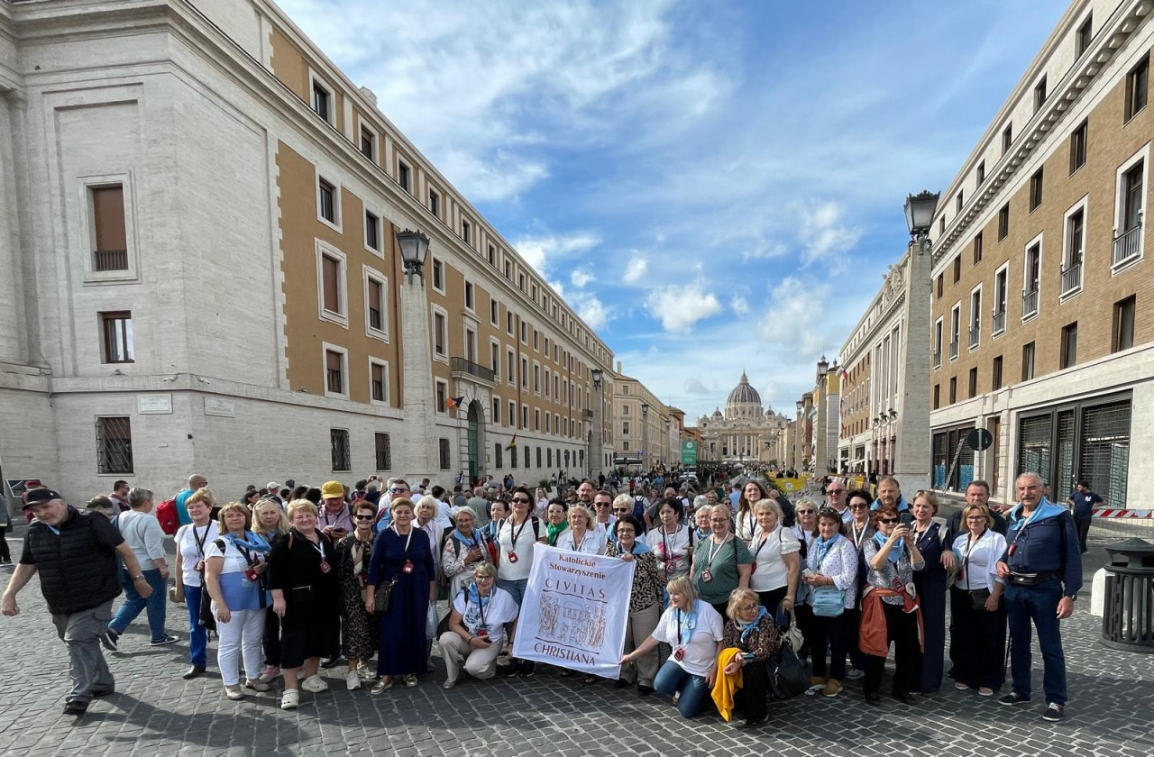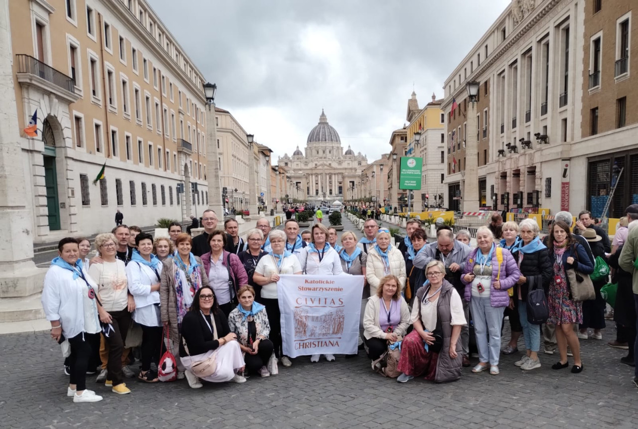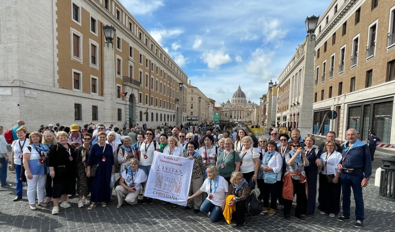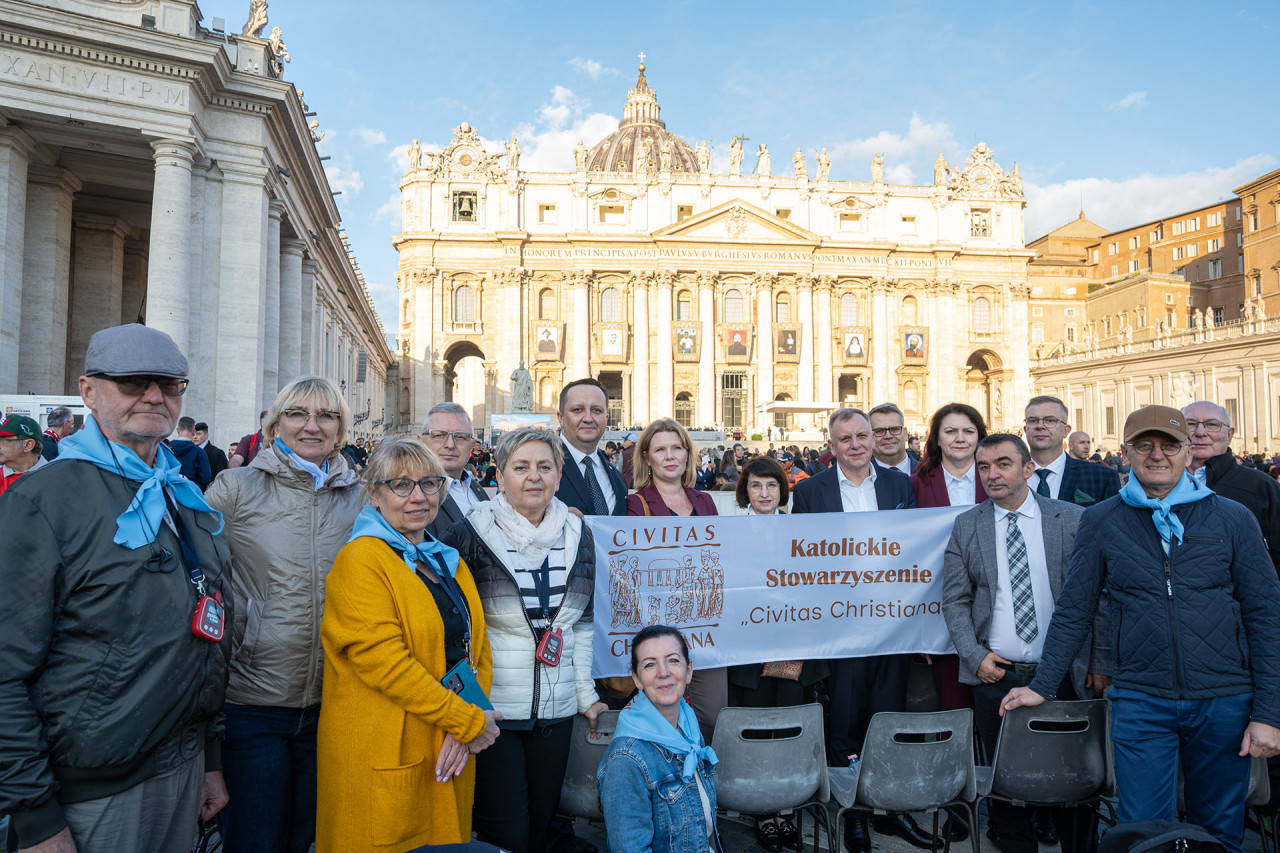 Udział w audiencji generalnej z papieżem Leonem XIV, Msza św. i spotkanie w kościele tytularnym kard. Stefana Wyszyńskiego, modlitwa przed grobem św. Jana Pawła II, symboliczne przejście przez Drzwi Święte w Roku Jubileuszowym, to główne punkty odbywającej się w dniach 22-23 października ogólnopolskiej pielgrzymki „Civitas Christiana” do Rzymu. Uczestniczyło w niej prawie 200 osób na czele z przedstawicielami władz Stowarzyszenia. Obecni byli także laureaci 29. Ogólnopolskiego Konkursu Wiedzy Biblijnej, dla których wyjazd do Włoch był nagrodą za konkursowe zwycięstwo.