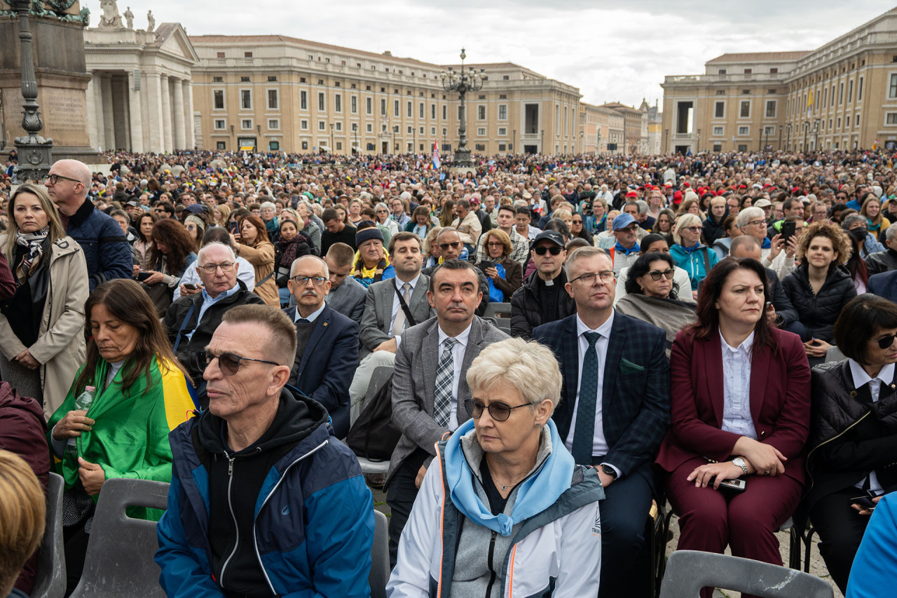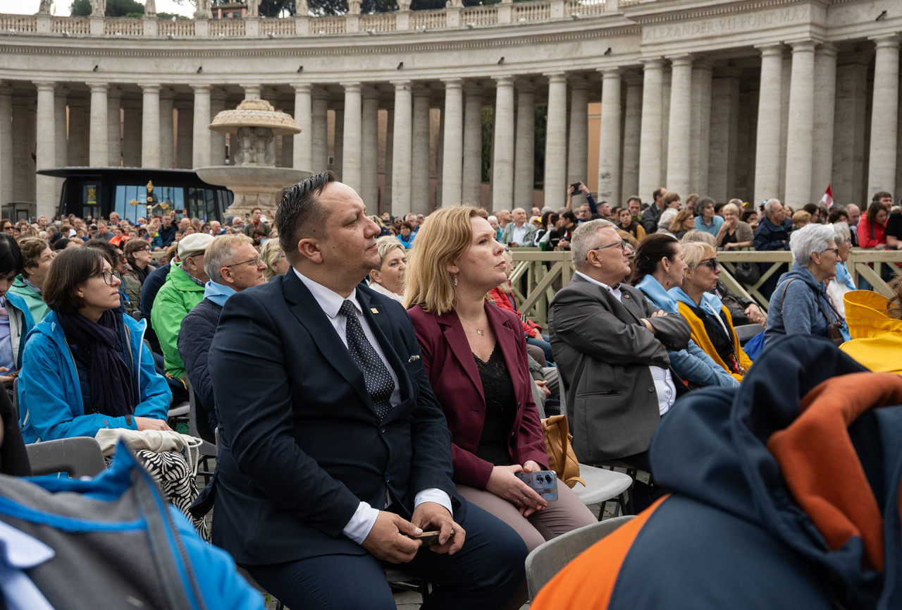 Wyjątkowym przeżyciem dla wszystkich pielgrzymów był udział w audiencji generalnej na placu św. Piotra. Nie tylko ze względu na spotkanie z Piotrem naszych czasów – papieżem Leonem XIV, ale również dlatego, że było to piękne doświadczenie żywego i radosnego Kościoła. W środowym spotkaniu udział wzięło kilkadziesiąt tysięcy osób z całego świata. Mimo wielkiego trudu – pobudki o 4 rano i oczekiwania w długich kolejach, by dostać się na plac – przeżycia w sercu pozostaną na zawsze.