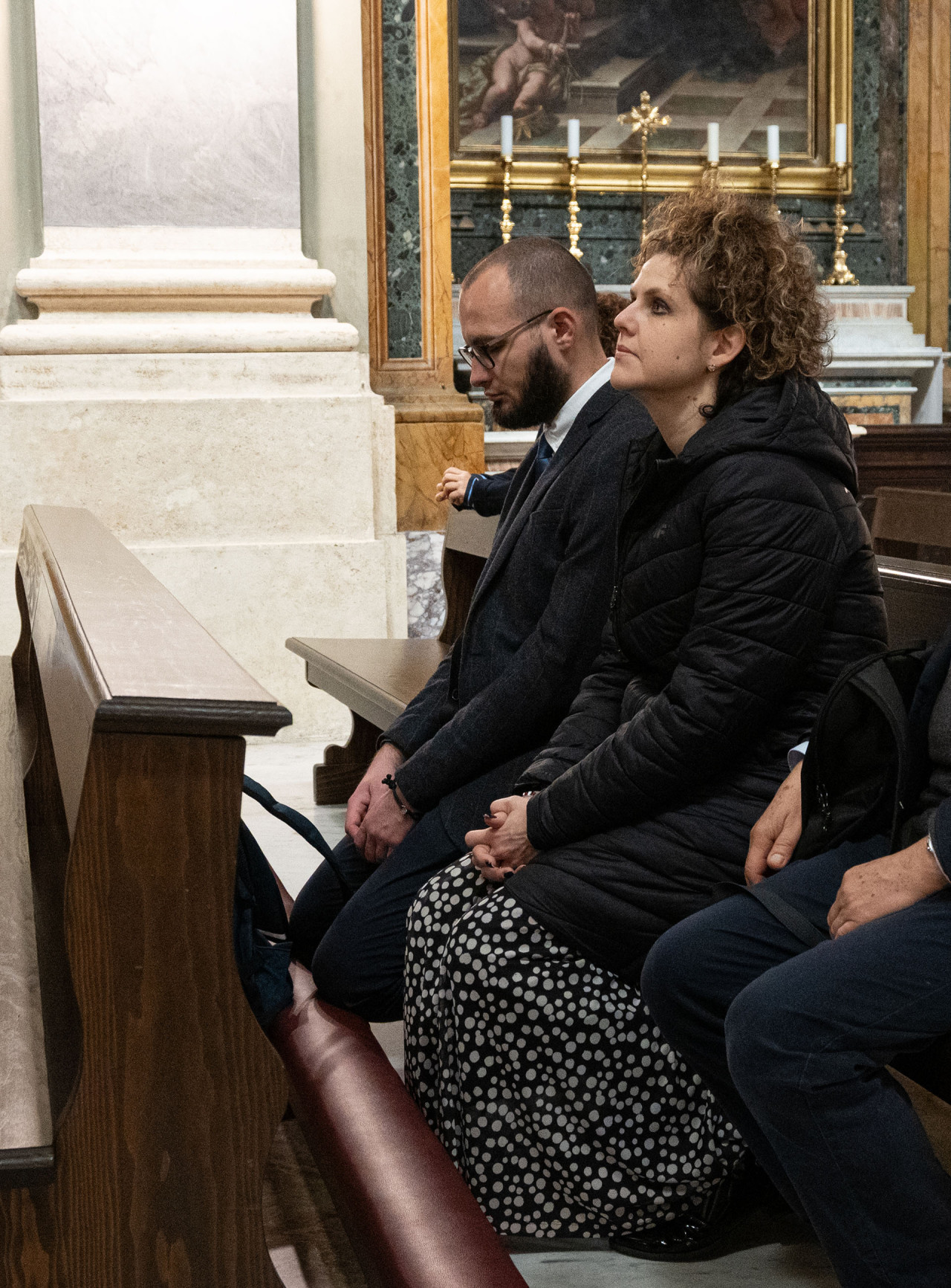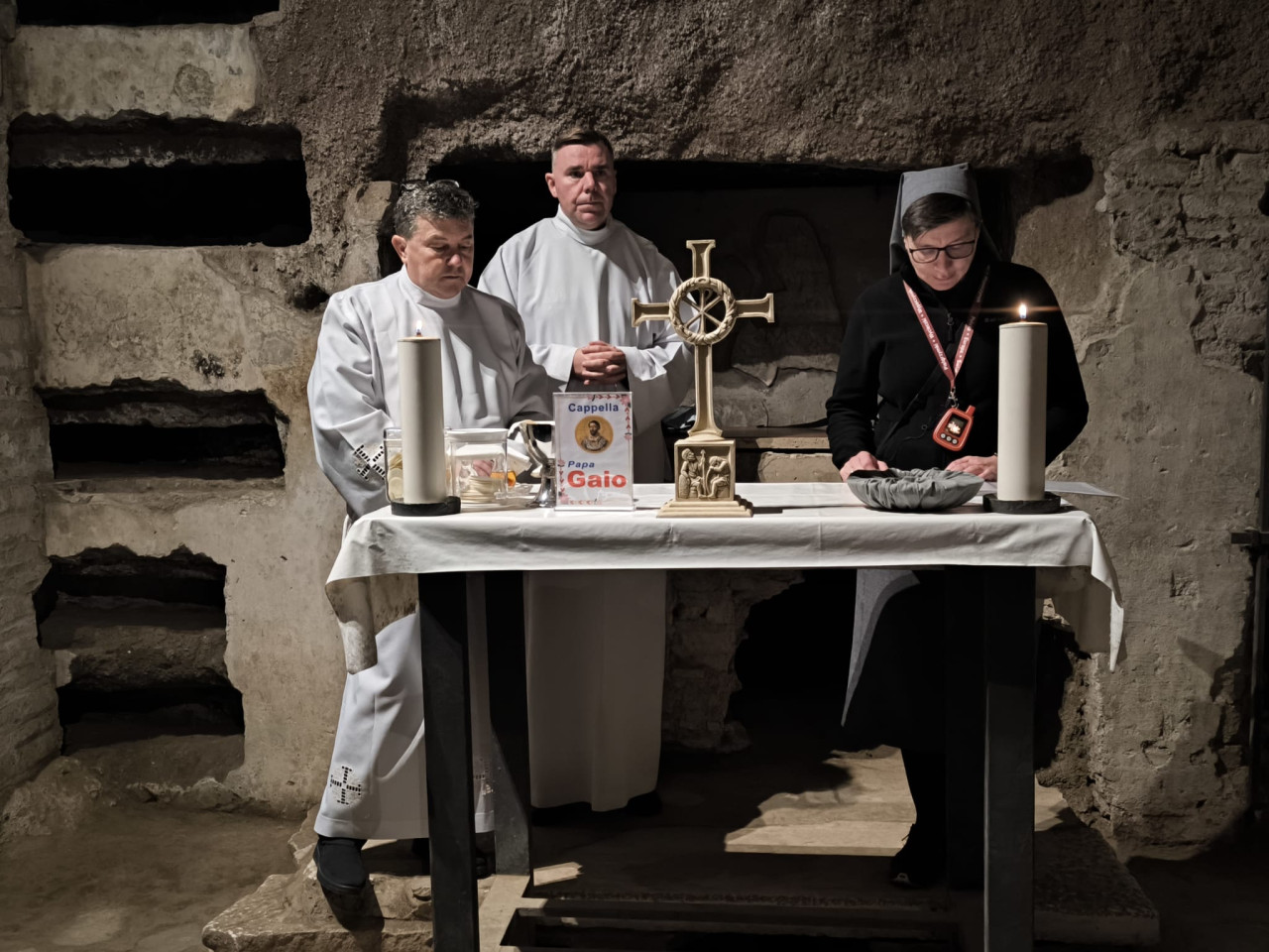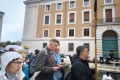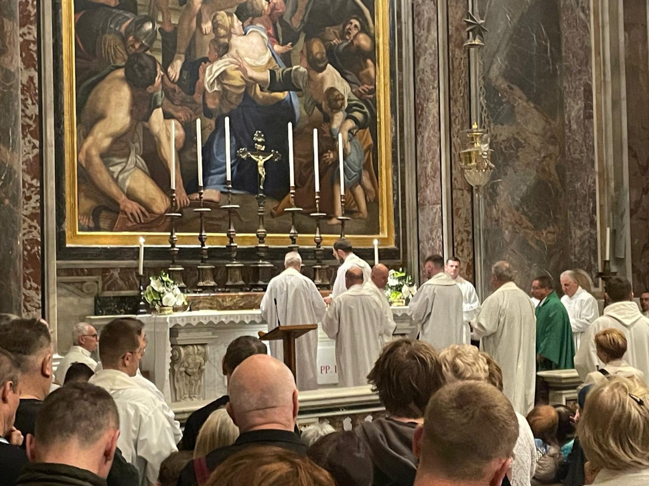 Najważniejszym punktem spotkania w bazylice NMP na Zatybrzu była Msza św. celebrowana przez pielgrzymujących z nami kapłanów pod przewodnictwem ks. Dariusza Wojteckiego, asystenta krajowego „Civitas Christiana”. W kazaniu przypomniał on, że „powołaniem naszym, w naszym byciu w Stowarzyszeniu i pośród ziemskich miast w naszej Ojczyźnie, jest budowanie miasta Chrystusa. (…) Miasto Chrystusa to przestrzeń sumienia i serca, w której dwa zdania naszych wielkich świętych orędowników Jana Pawła II i kard. Stefana Wyszyńskiego współbrzmią wzajemnie: nie lękajcie się i otwórzmy drzwi Chrystusowi – wyjaśniał kaznodzieja. Zachęcał byśmy otworzyli drzwi naszych serc, drzwi naszego Stowarzyszenia i odważnie realizowali program duchowy, który nam pozostawili, a który ani się nie zestarzał, ani się nie zestarzeje z czasem. „Dla naszego Patrona Kościół był wspólnotą sumień, które się nigdy nie poddają dyktatowi kłamstwa. Dla Jana Pawła II był wspólnotą osób, które odkrywają swoją godność w świetle wcielenia Piękna. Obaj wiedzieli, że odnowa świata nie pochodzi z zewnątrz, ale z wnętrza serc oddanych Chrystusowi przez Maryję” – mówił ks. Wojtecki.