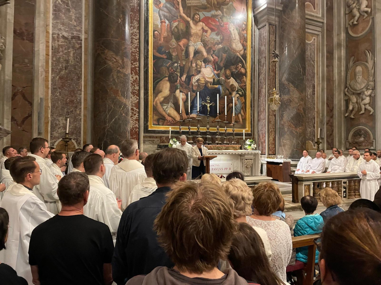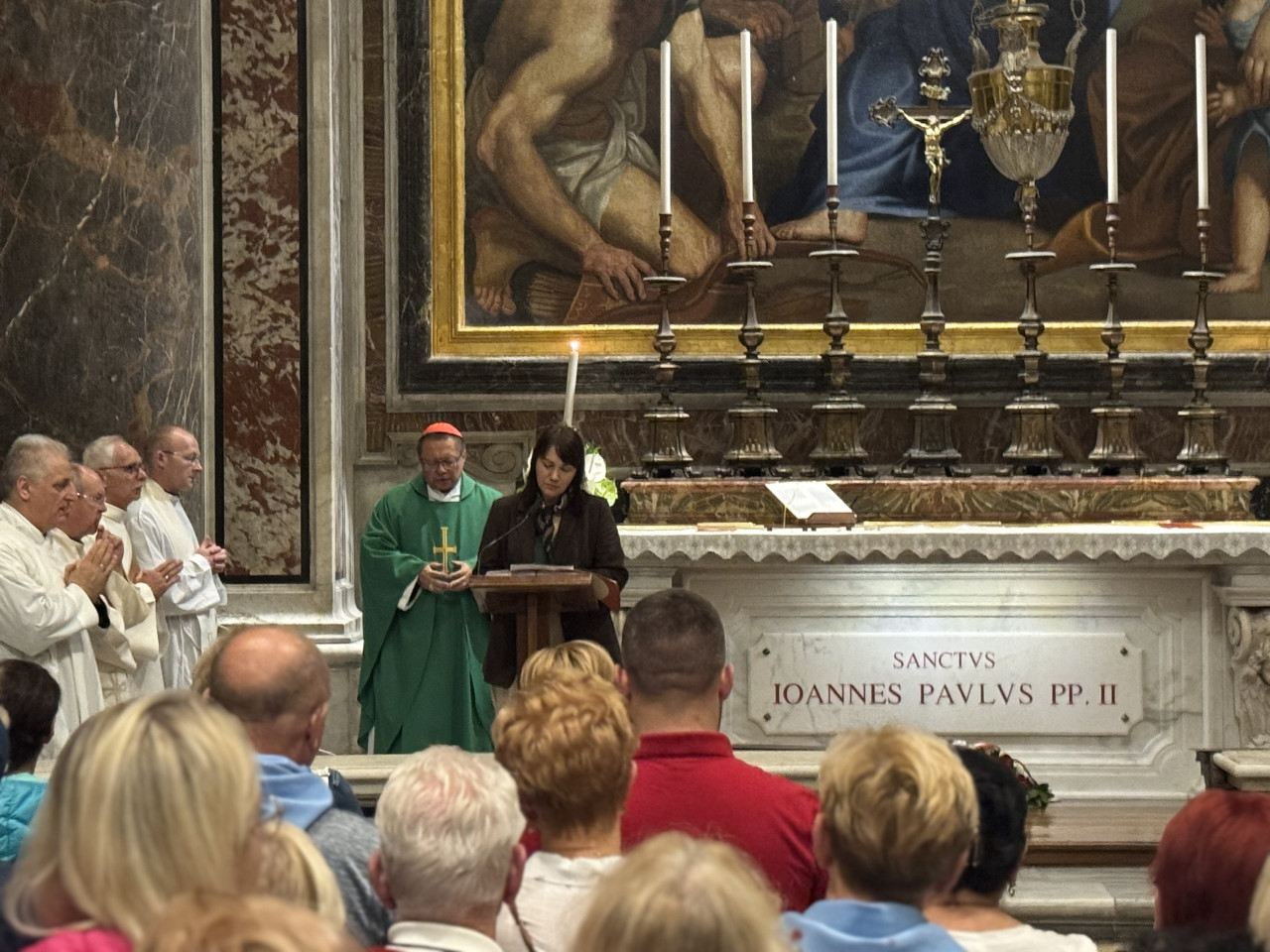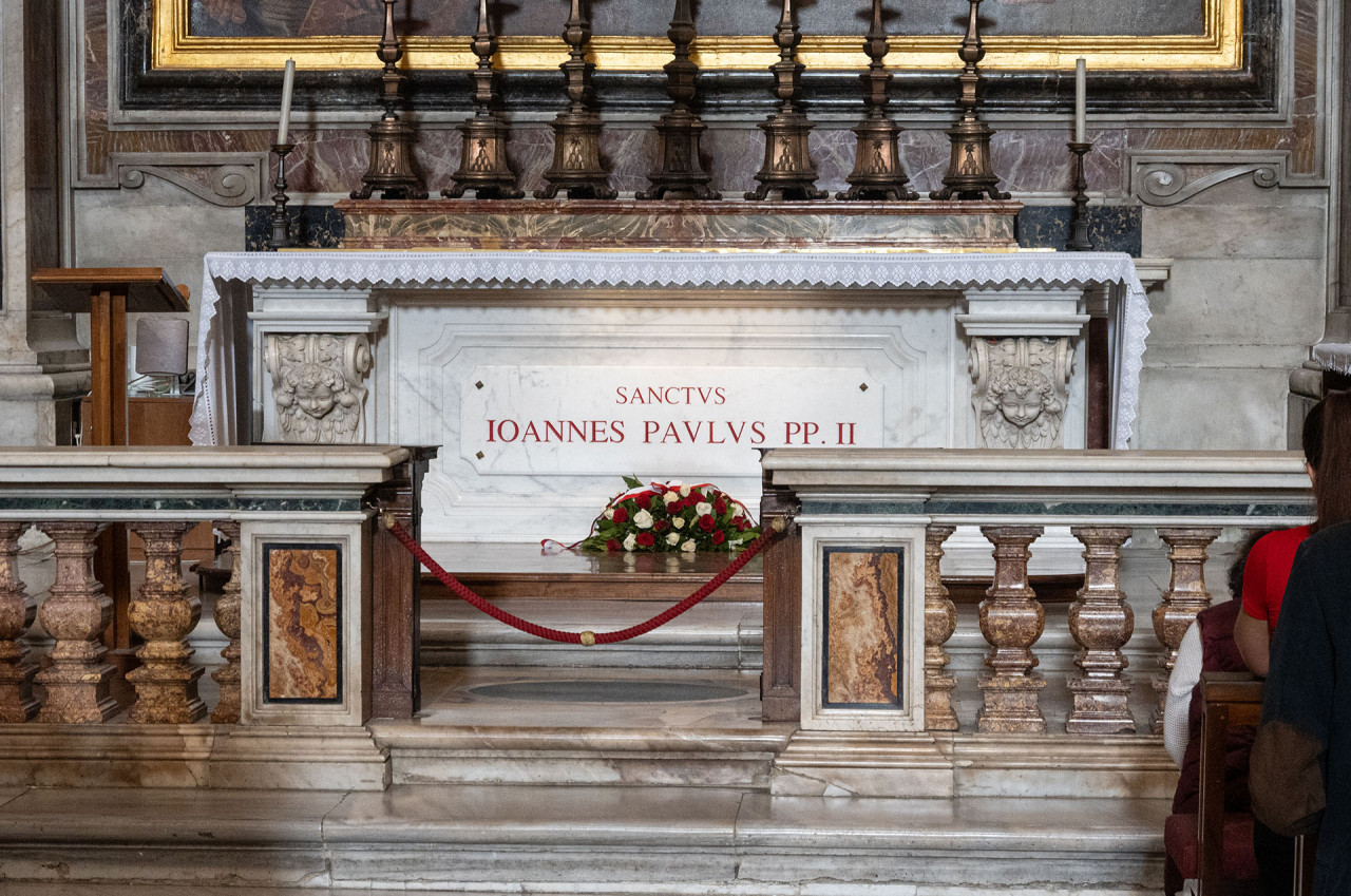 Ze św. Janem Pawłem II „spotkaliśmy” się ponownie nazajutrz, gdy uczestniczyliśmy w czwartkowej Mszy św. przy jego grobie, celebrowanej dla Polaków. Przewodniczył jej metropolita łódzki kard. Grzegorz Ryś. W homilii, odwołując się do tekstu św. Pawła, mówił o modelu życia. „Albo żyjemy w logice zapłaty, albo żyjemy w logice daru. Albo będziemy ludziom odpłacać, albo będziemy w stosunku do ludzi hojnymi i wolnymi dawcami. Nasze relacje nie będą relacjami zapłaty, tylko będą relacjami wolnych ludzi, którzy potrafią się wzajemnie obdarowywać” – wskazywał.