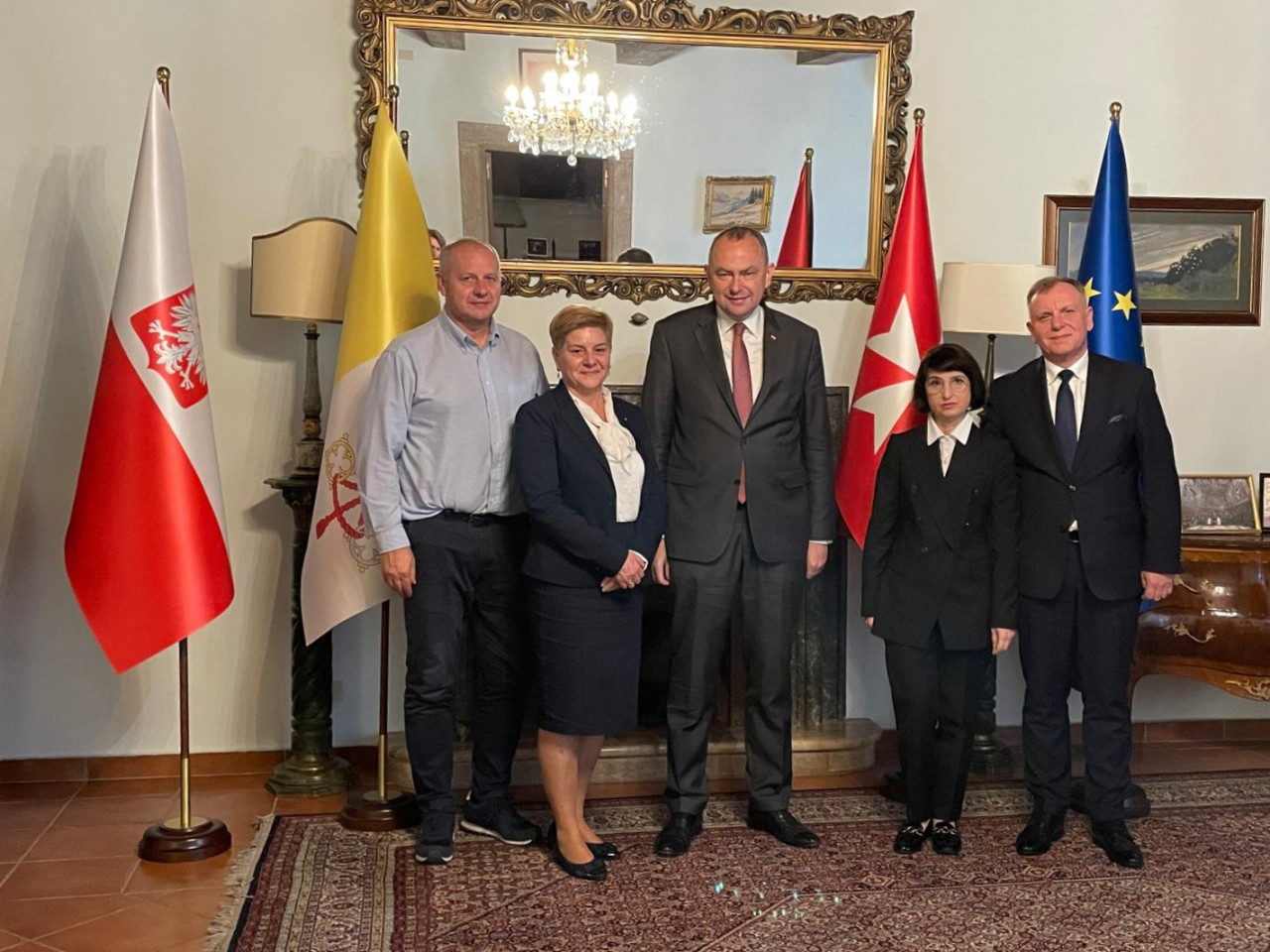 W trakcie naszej pielgrzymki do Rzymu odbyło się spotkanie przedstawicieli Stowarzyszenia: Sławomira Józefiaka i Izabeli Tyras z małżonkami z Ambasadorem RP przy Stolicy Apostolskiej, Adamem Kwiatkowskim. Spotkanie poświęcone było dziedzictwu św. Jana Pawła II i bł. Stefana Wyszyńskiego.