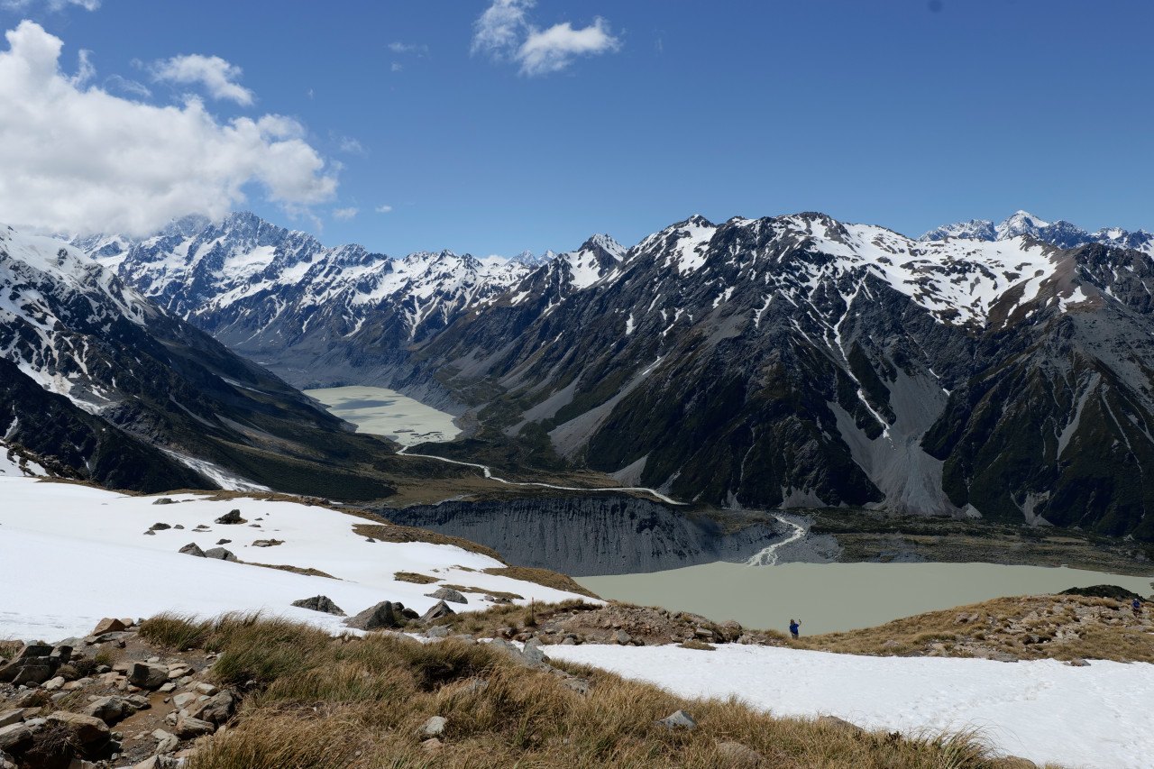 W pobliżu lodowców, bliżej środka wyspy, znajduje się Góra Cooka, czyli najwyższy szczyt Nowej Zelandii. Jadąc w jego kierunku, trzeba minąć jezioro Pukaki, w którego szmaragdowych wodach już z daleka odbija się ośnieżony szczyt. Na samą górę nie można wchodzić, ale w pobliżu znajdują się dwa szlaki, które umożliwiają oglądanie pobliskiej panoramy i góry z nieco wyższej perspektywy. Kolejną możliwością zbliżenia się do góry jest lot śmigłowcem z międzylądowaniem w pobliżu.