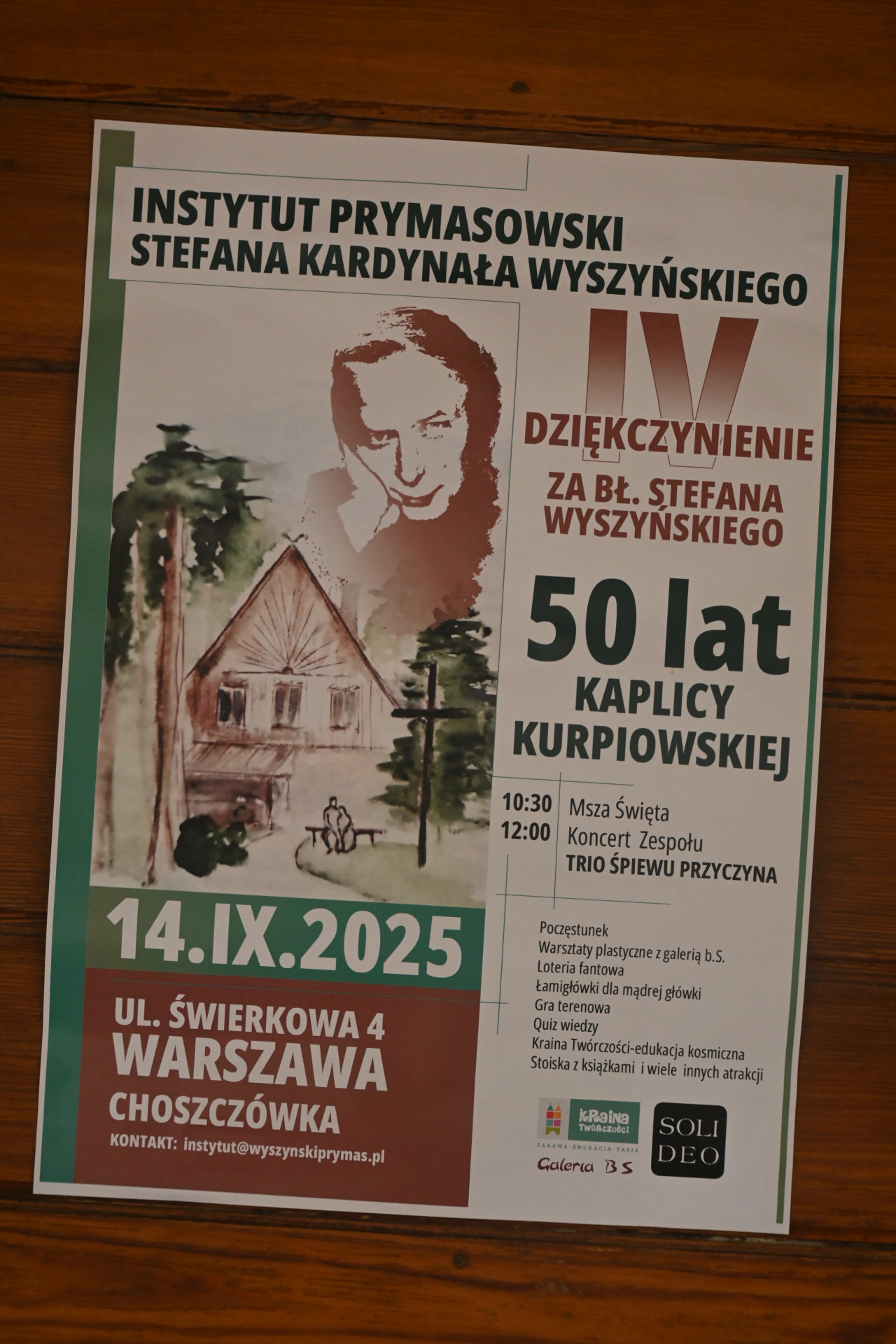 W tym roku okazja była podwójna – czwarte już dziękczynienie za beatyfikację Stefana kard. Wyszyńskiego, połączone z modlitwą o jego kanonizację oraz 50-lecie kaplicy kurpiowskiej. Spotkanie rozpoczęło się właśnie w tym miejscu uroczystą mszą świętą pod przewodnictwem ks. Andrzeja Gałki. Po Eucharystii był czas na rozmowy, poczęstunek i zwiedzanie. Mieliśmy przyjemność spotkać panie Iwonę Czarcińską oraz Michalinę Janowską, dyrektor Instytutu, a także Annę Rastawicką. Tego dnia Instytut Prymasa Wyszyńskiego tętnił życiem. Wszelkie organizacyjno-logistyczne działania były prężnie realizowane zarówno przez panie z Instytutu, jak przez inne osoby, w tym młodzież i dzieci, zaangażowane w organizację. Gości podjęto zarówno pysznymi domowymi ciastami, jak i ciepłym posiłkiem. Podczas wydarzenia była możliwość zakupu książek Instytutu Wydawniczego PAX.